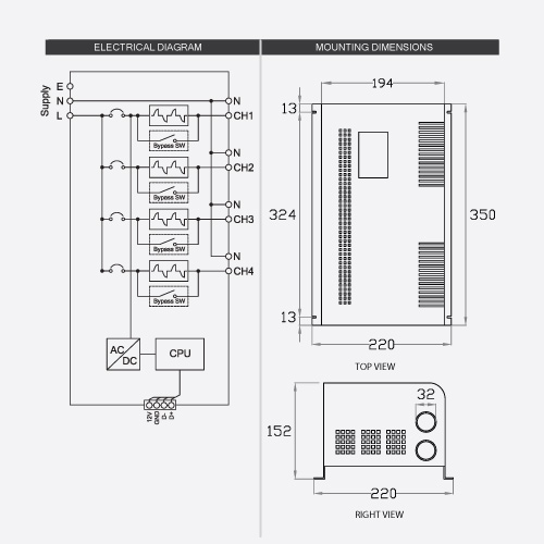 • มีสวิชท์ Bypass Switch : 4 CH (ให้ทุกช่องควบคุม กรณีฉุกเฉิน)